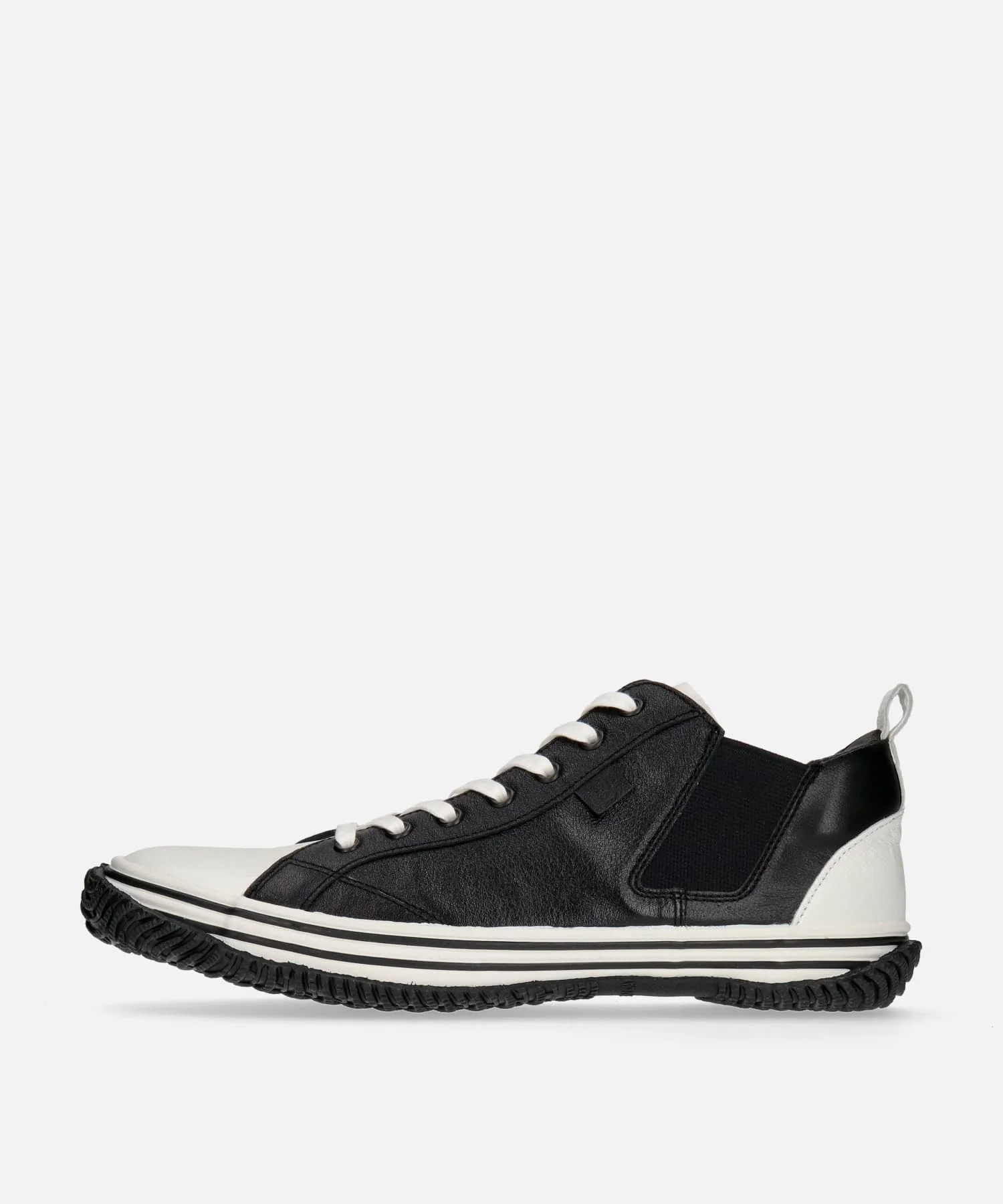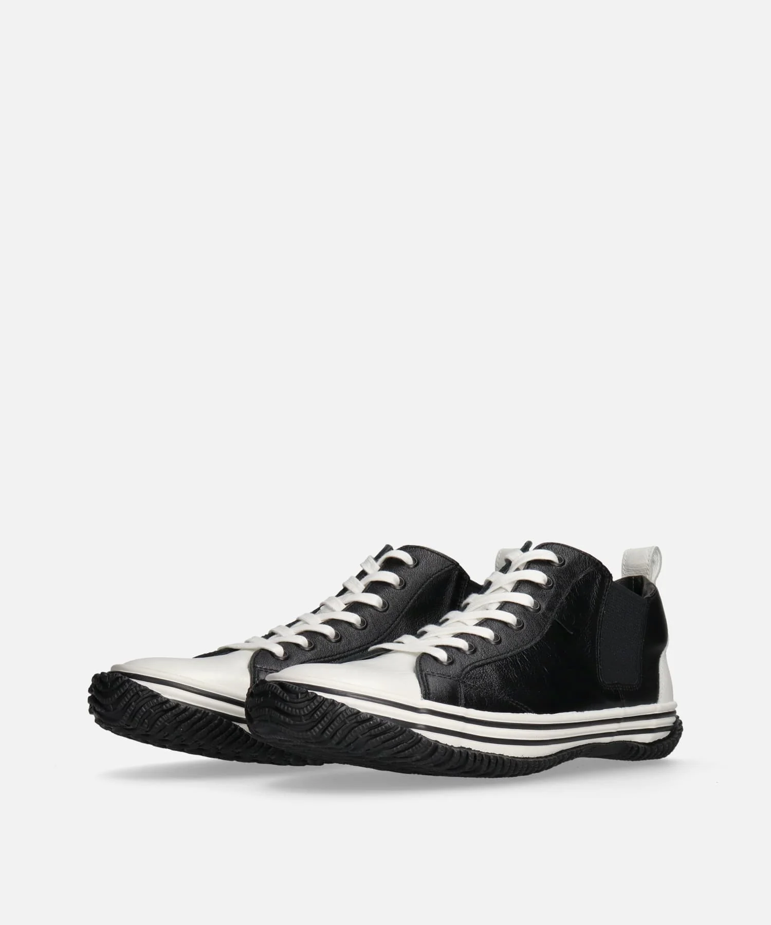 캥거루 가죽 소재를 사용한 사이드 고어 미들컷입니다.