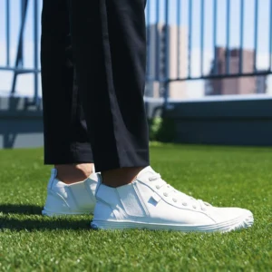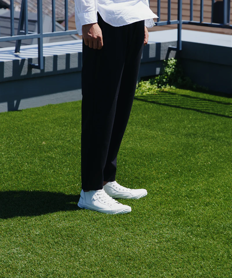 벌커나이즈 제법으로 압착한 밑창을 얇게 감아올려 깨끗히 스마트하게 마무리했습니다.