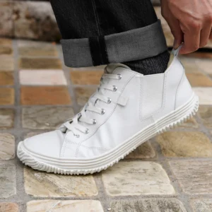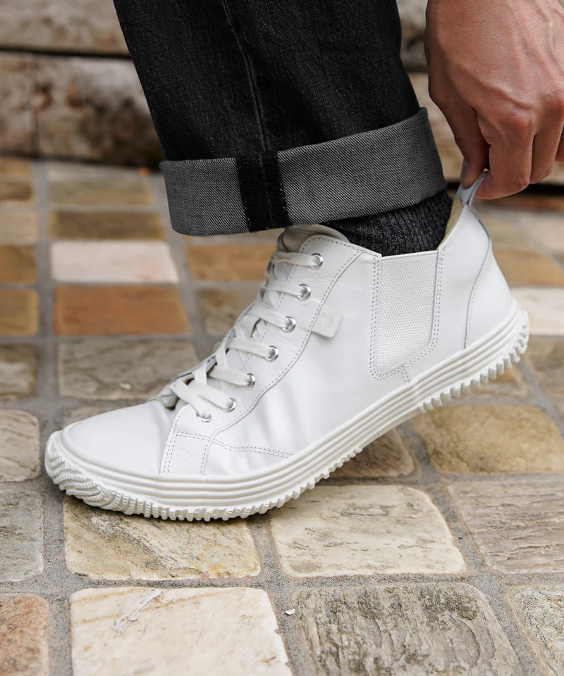 캥거루 가죽 소재를 사용한 사이드 고어 미들컷입니다.